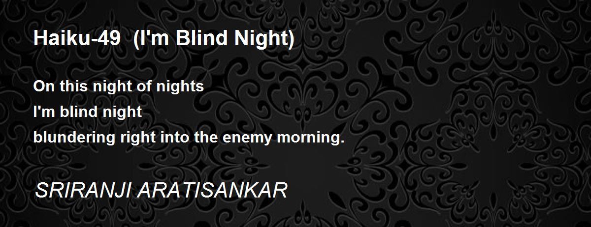 On this night of nights I'm blind night blundering right into the enemy morning.