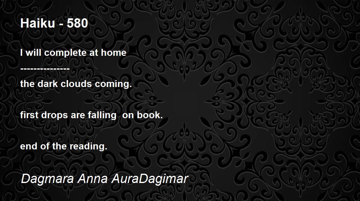I will complete at home --------------- the dark clouds coming. first drops are falling on book. end of the reading.