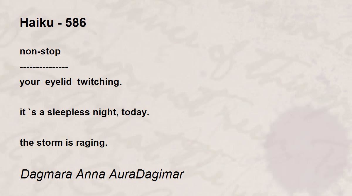 non-stop --------------- your eyelid twitching. it `s a sleepless night, today. the storm is raging.