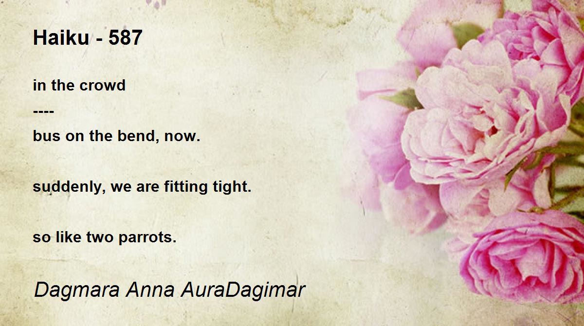 in the crowd ---- bus on the bend, now. suddenly, we are fitting tight. so like two parrots.