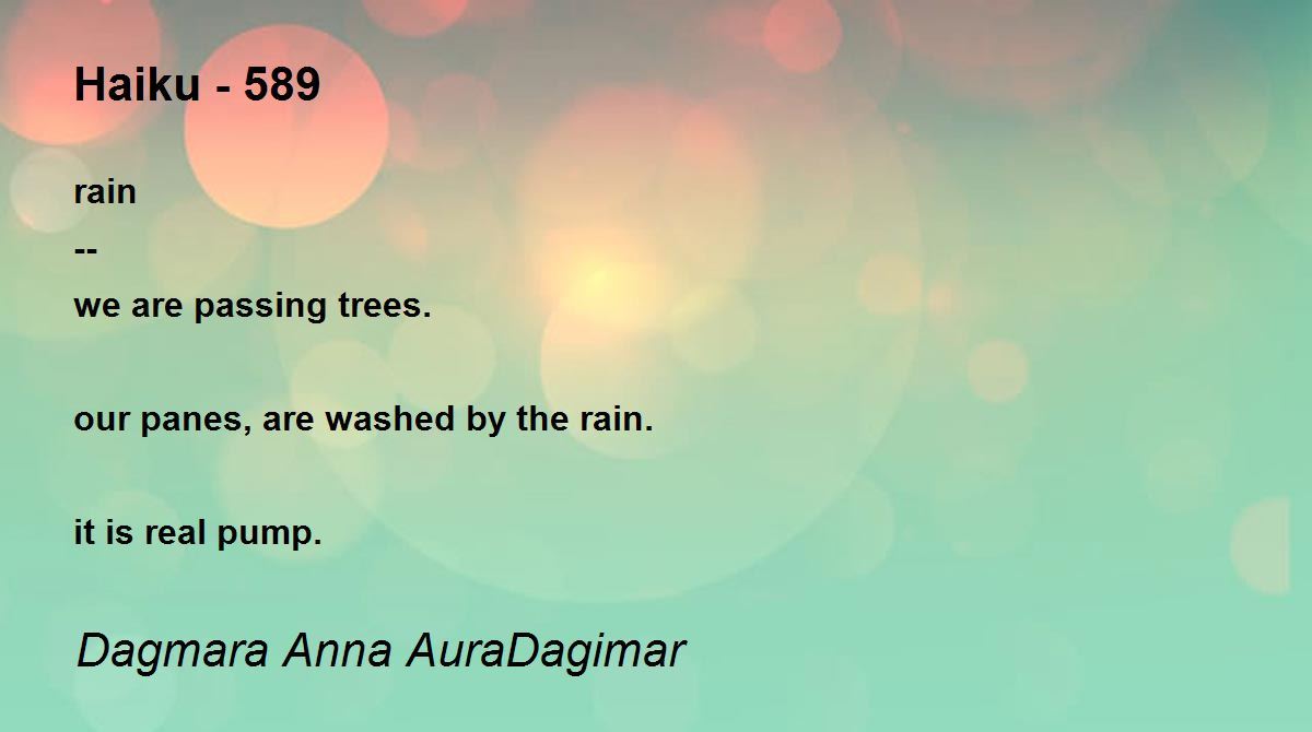 rain -- we are passing trees. our panes, are washed by the rain. it is real pump.