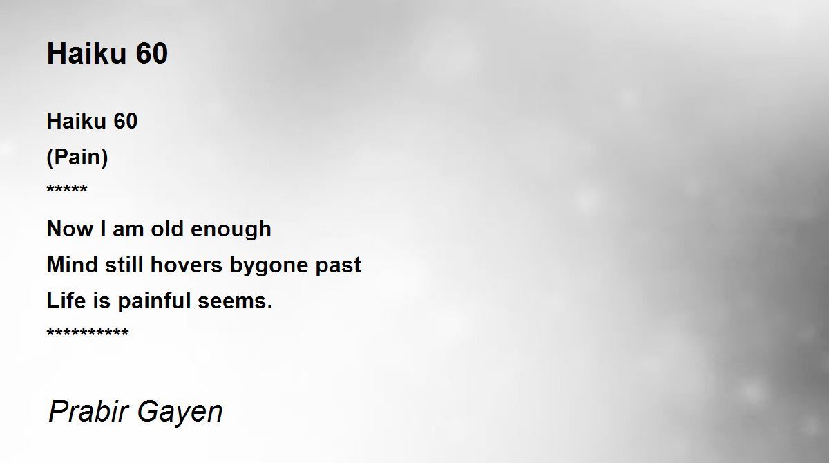 Now I am old enough Mind still hovers bygone past Life is painful seems.
