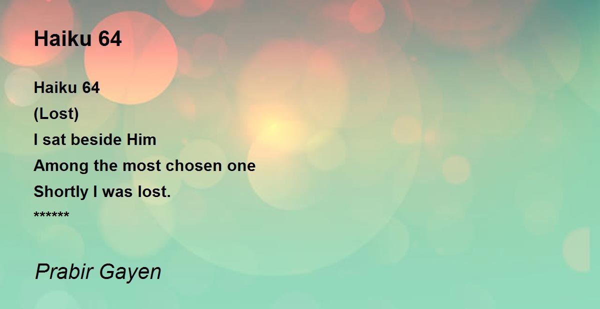 Among the most chosen one..... i sat.........a feeling, which you try to describe but not fully able to depict. tony a fine Haiku. tony