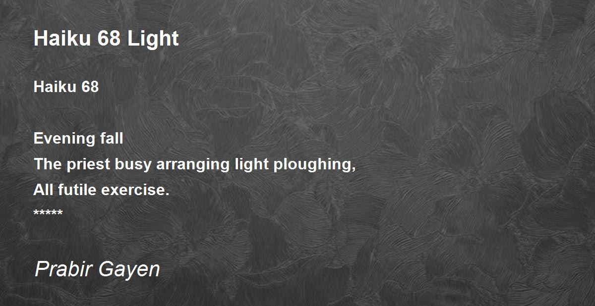 Evening fall The priest busy arranging light ploughing, All futile exercise.