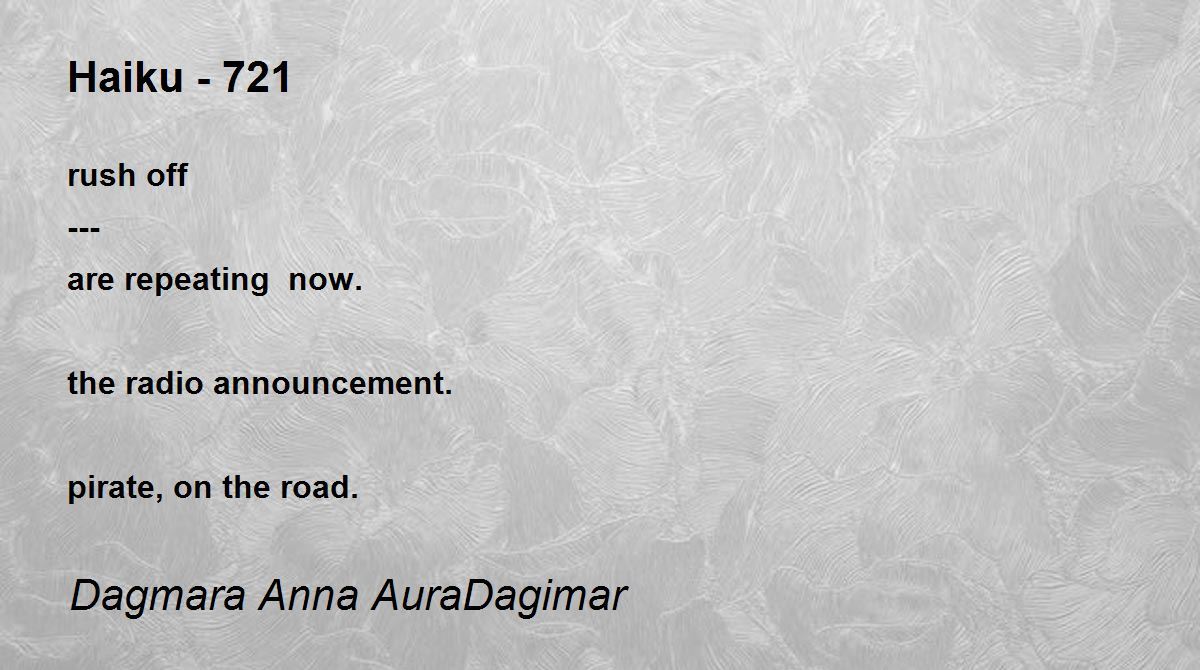 rush off --- are repeating now. the radio announcement. pirate, on the road.
