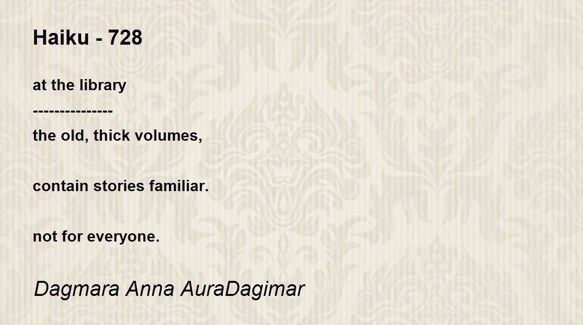 at the library --------------- the old, thick volumes, contain stories familiar. not for everyone.