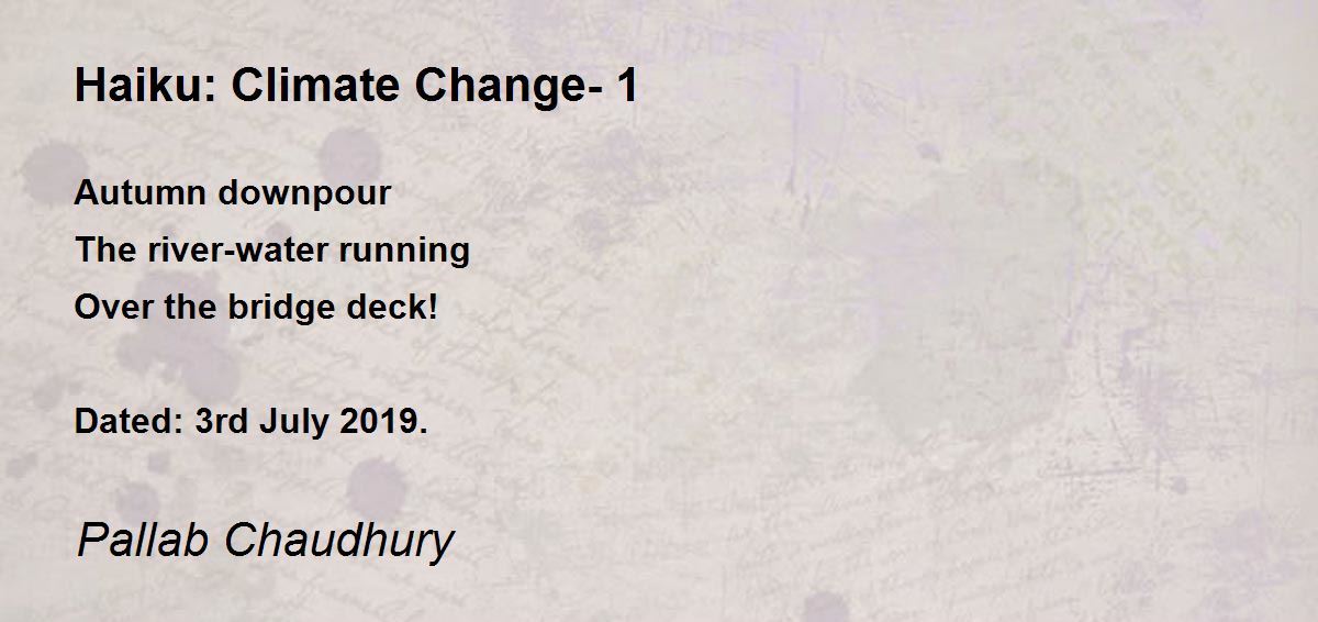 Autumn downpour The river-water running Over the bridge deck! Dated: 3rd July 2019.