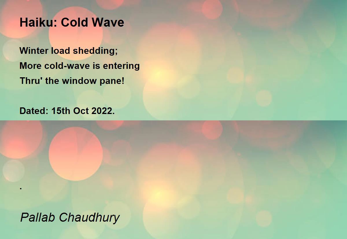 Winter load shedding; More cold-wave is entering Thru' the window pane! Dated: 15th Oct 2022. .