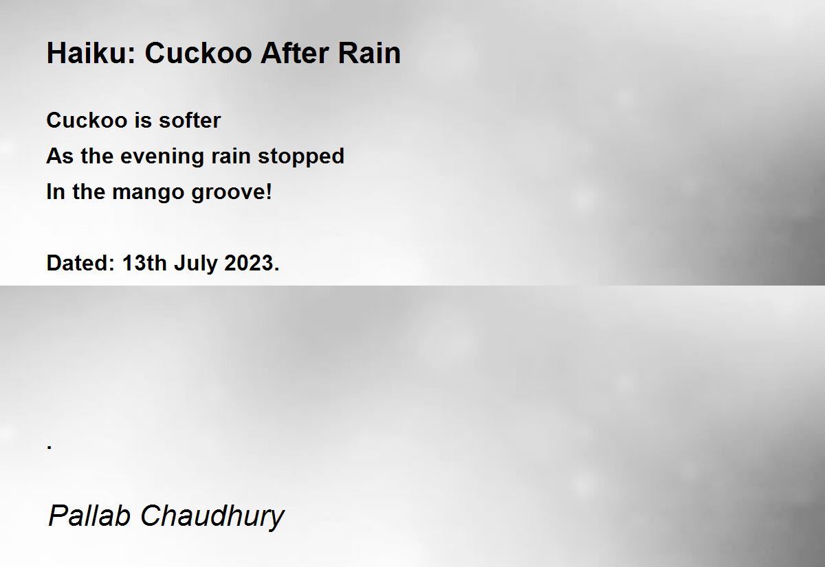 Cuckoo is softer As the evening rain stopped In the mango groove! Dated: 13th July 2023. .