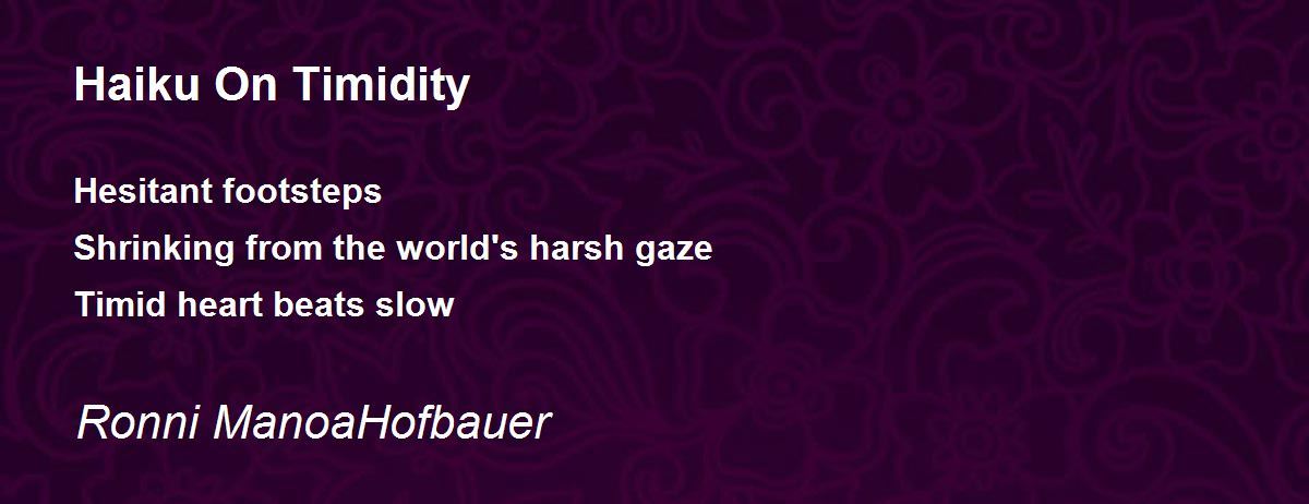 Hesitant footsteps Shrinking from the world's harsh gaze Timid heart beats slow
