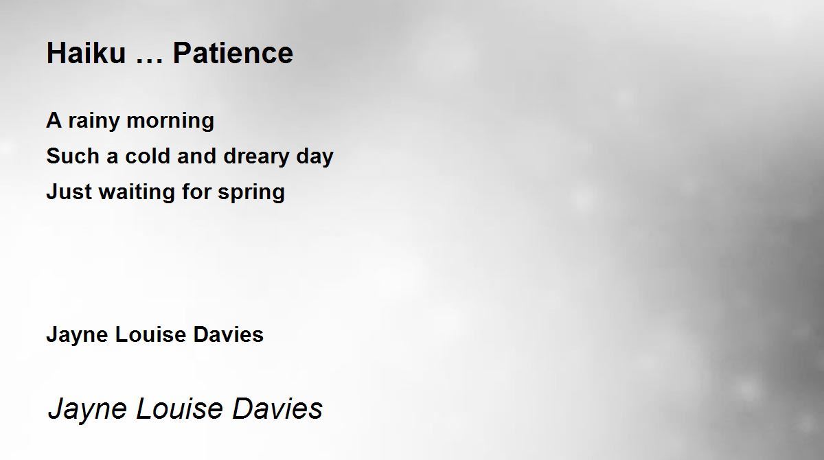 A rainy morning Such a cold and dreary day Just waiting for spring Jayne Louise Davies