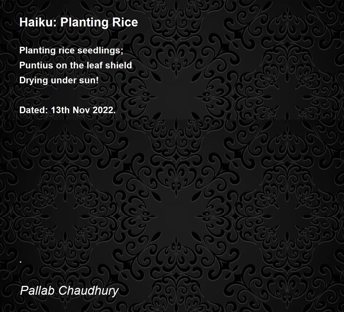 Planting rice seedlings; Puntius on the leaf shield Drying under sun! Dated: 13th Nov 2022. .