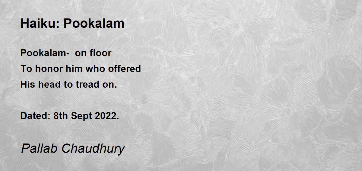 Fantastic haiku dear Pallab on Pookalam! So beautifilly presented the story of Mahabali & Onam......10 and to my favourite