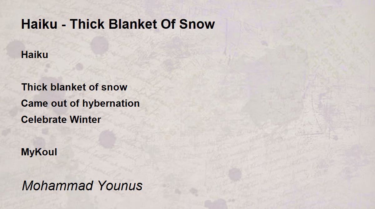 Haiku Thick blanket of snow Came out of hybernation Celebrate Winter MyKoul