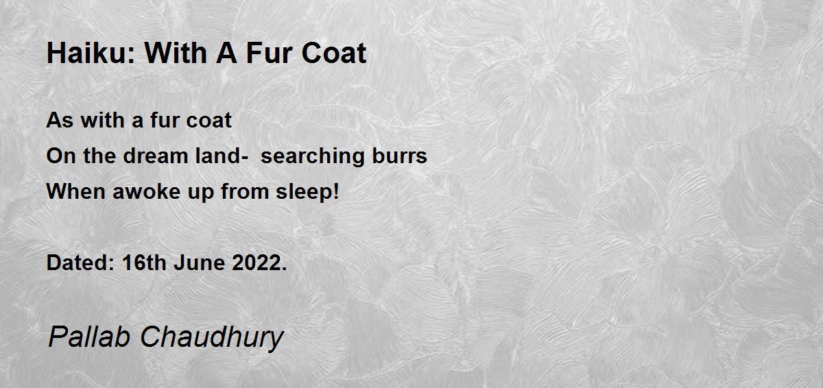 As with a fur coat On the dream land- searching burrs When awoke up from sleep! Dated: 16th June 2022.
