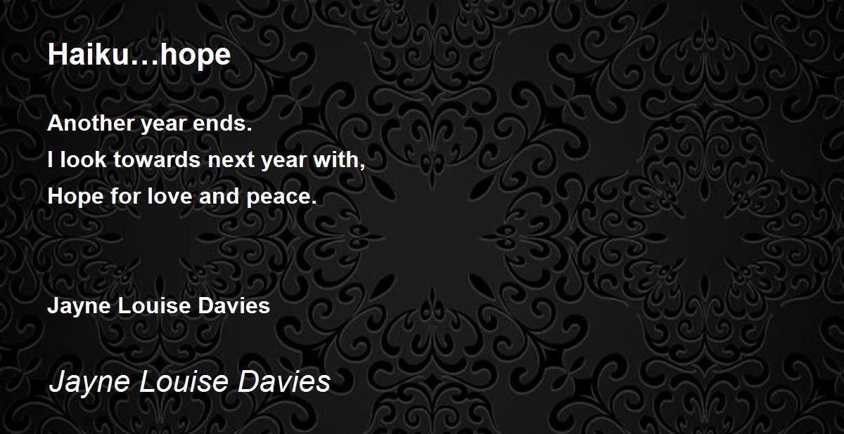 Another year ends. I look towards next year with, Hope for love and peace. Jayne Louise Davies