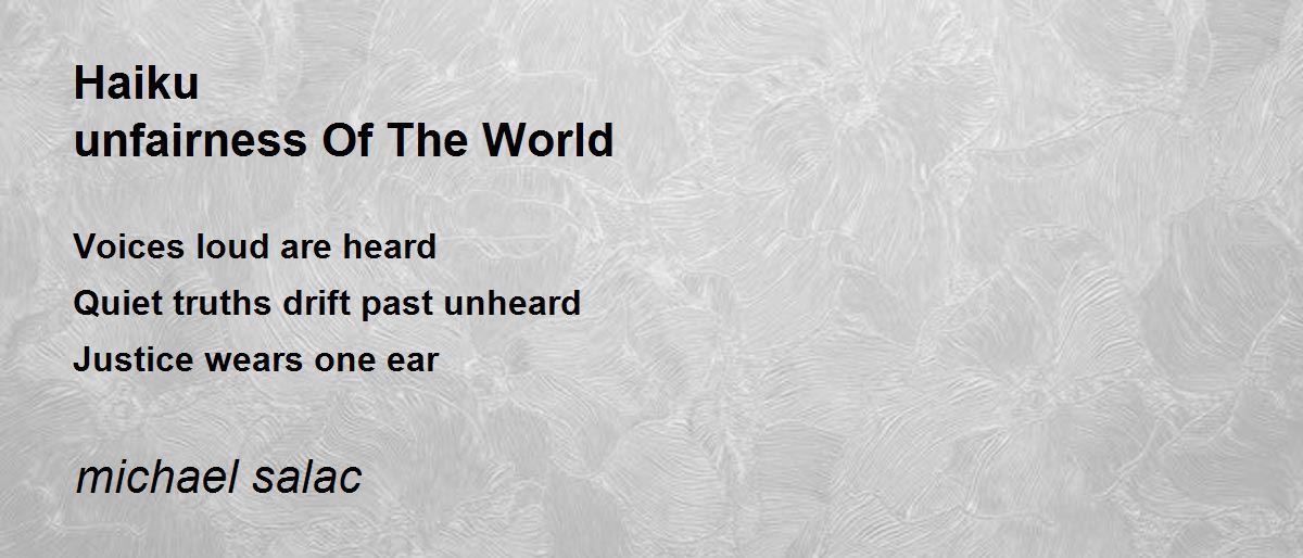Voices loud are heard Quiet truths drift past unheard Justice wears one ear