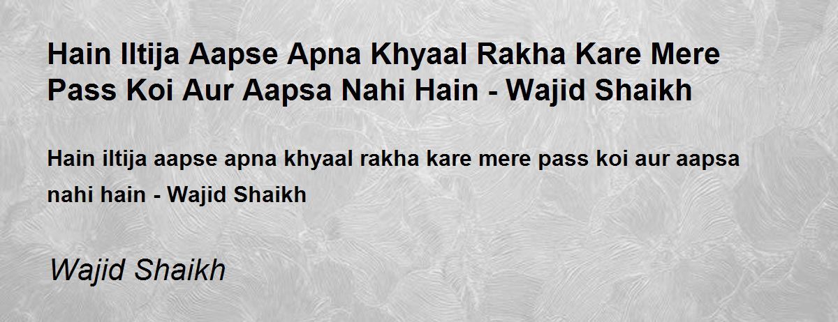 Hain iltija aapse apna khyaal rakha kare mere pass koi aur aapsa nahi hain - Wajid Shaikh