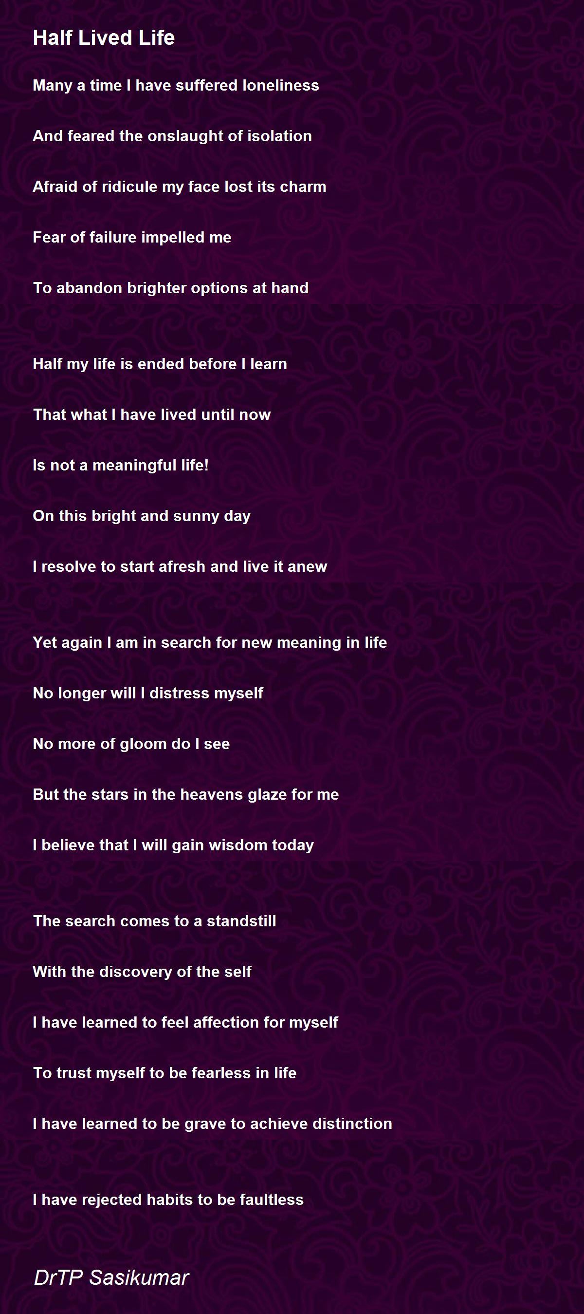 Half my life is lived only to learn