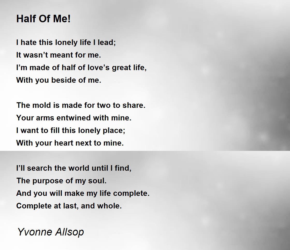 I’m made of half of love’s great life,