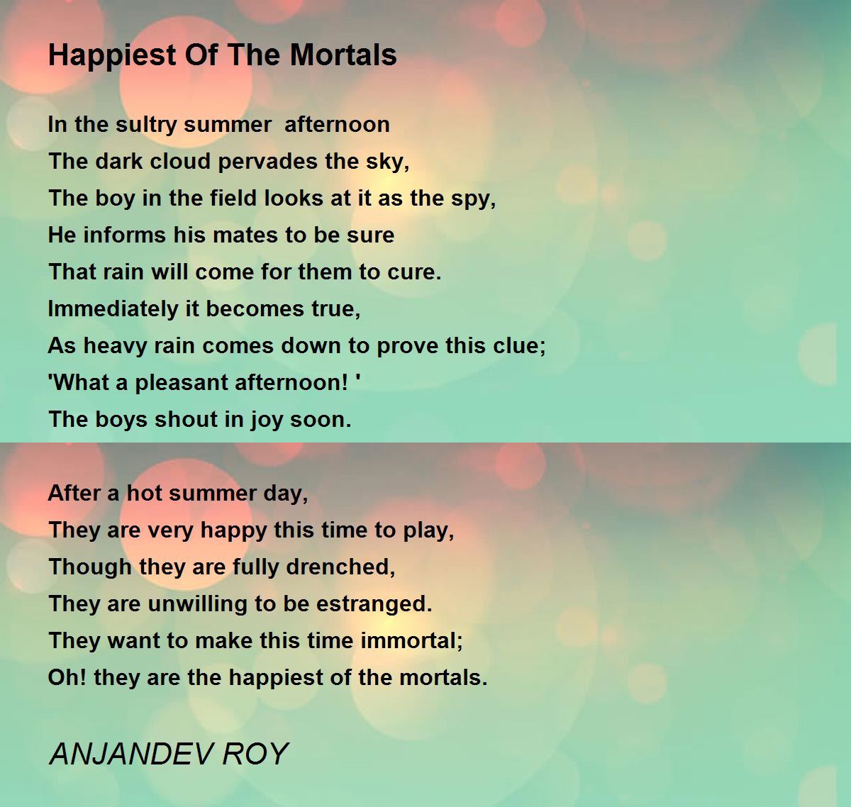 Though they are fully drenched, They are unwilling to be estranged. They want to make this time immortal; Oh! they are the happiest of the mortals. loving nature and being with the nature and living at this present moment in real happiness. tony