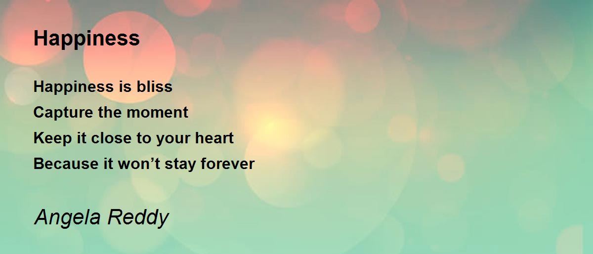 Happiness is bliss Capture the moment Keep it close to your heart Because it won’t stay forever