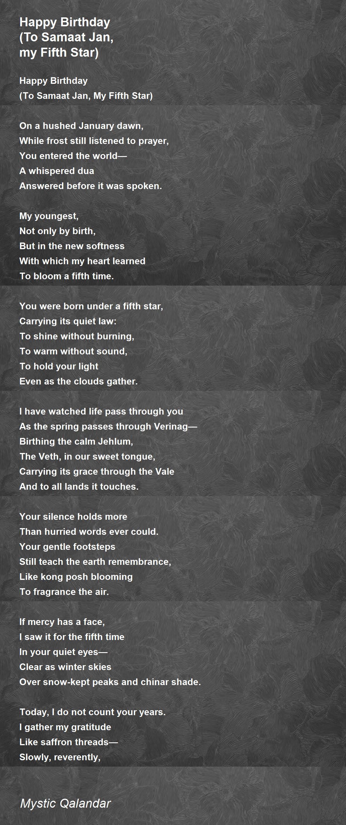 (To Samaat Jan, My Fifth Star)
