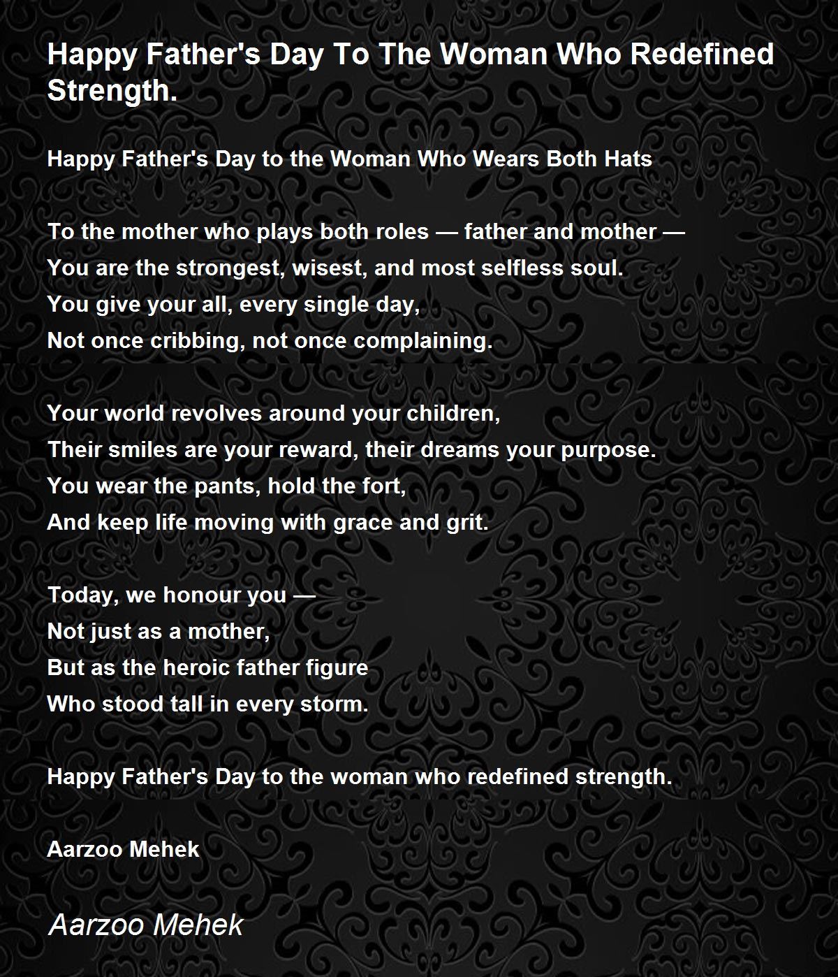 A great tribute to all mothers out there who perform the roles of both mother and father. Yes, they are the most courageous and selfless soul. They deserve our utmost respect, care and love. Beautifully written.