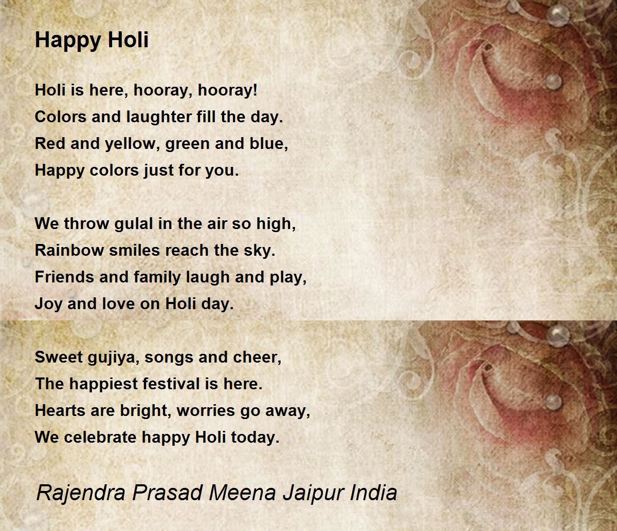 Happy Holi Poem by Rajendra Prasad Meena Jaipur India