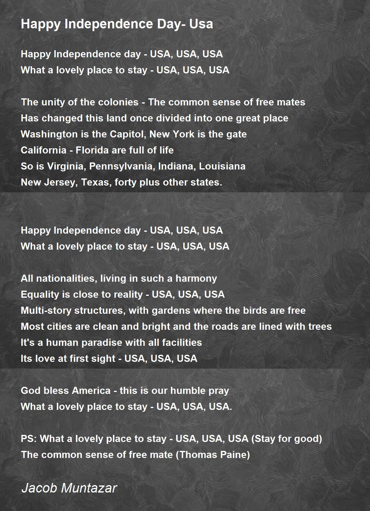 A beautiful piece of poetry written in commemoration of The US Independence day. Well conceived and nicely penned from the heart. Thanks for sharing Jacob.
