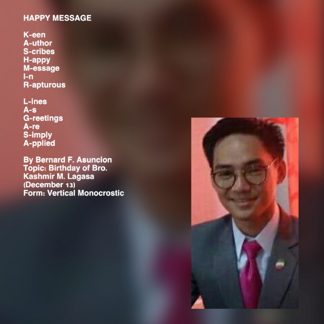Topic: Birthday of Bro. Kashmir M. Lagasa (December 13)