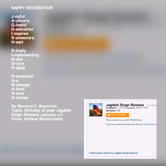 Topic: Birthday of poet Jagdish Singh Ramana (January 07)