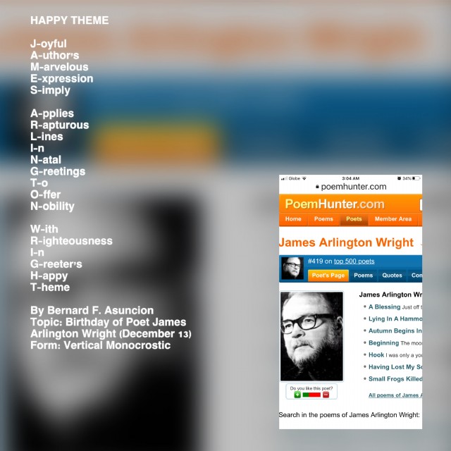 Topic: Birthday of Poet James Arlington Wright (December 13)