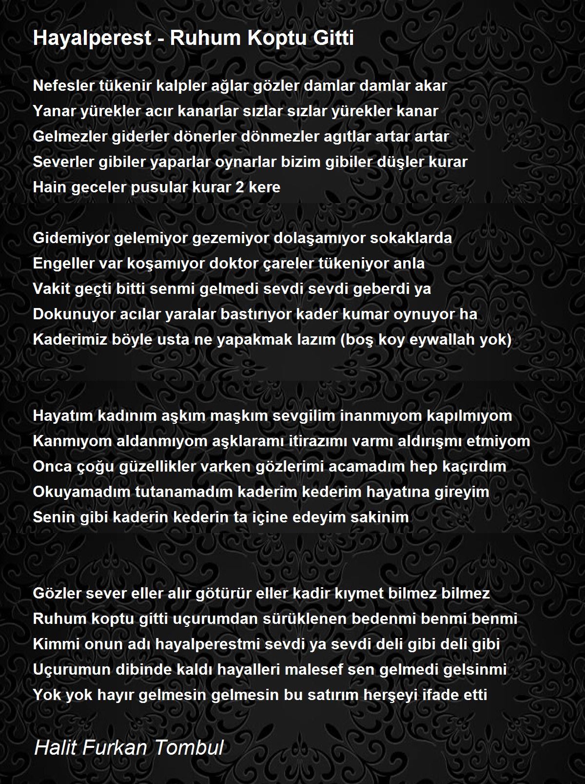 Ruhum koptu gitti uçurumdan sürüklenen bedenmi benmi benmi
