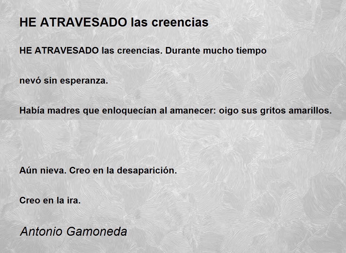 HE ATRAVESADO las creencias. Durante mucho tiempo
