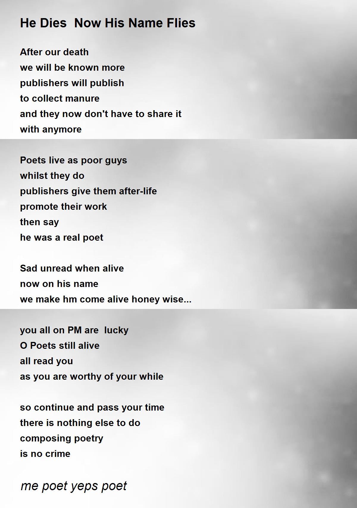Publishers will publish to collect manure after death and this will be amazing favour for creativity. Publishers promote poets. Composing poetry is no crime at all. This gives peace and self satisfaction to the poet. Brilliant idea is shared in this poem...10