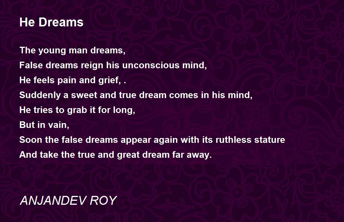 Suddenly a sweet and true dream comes in his mind,