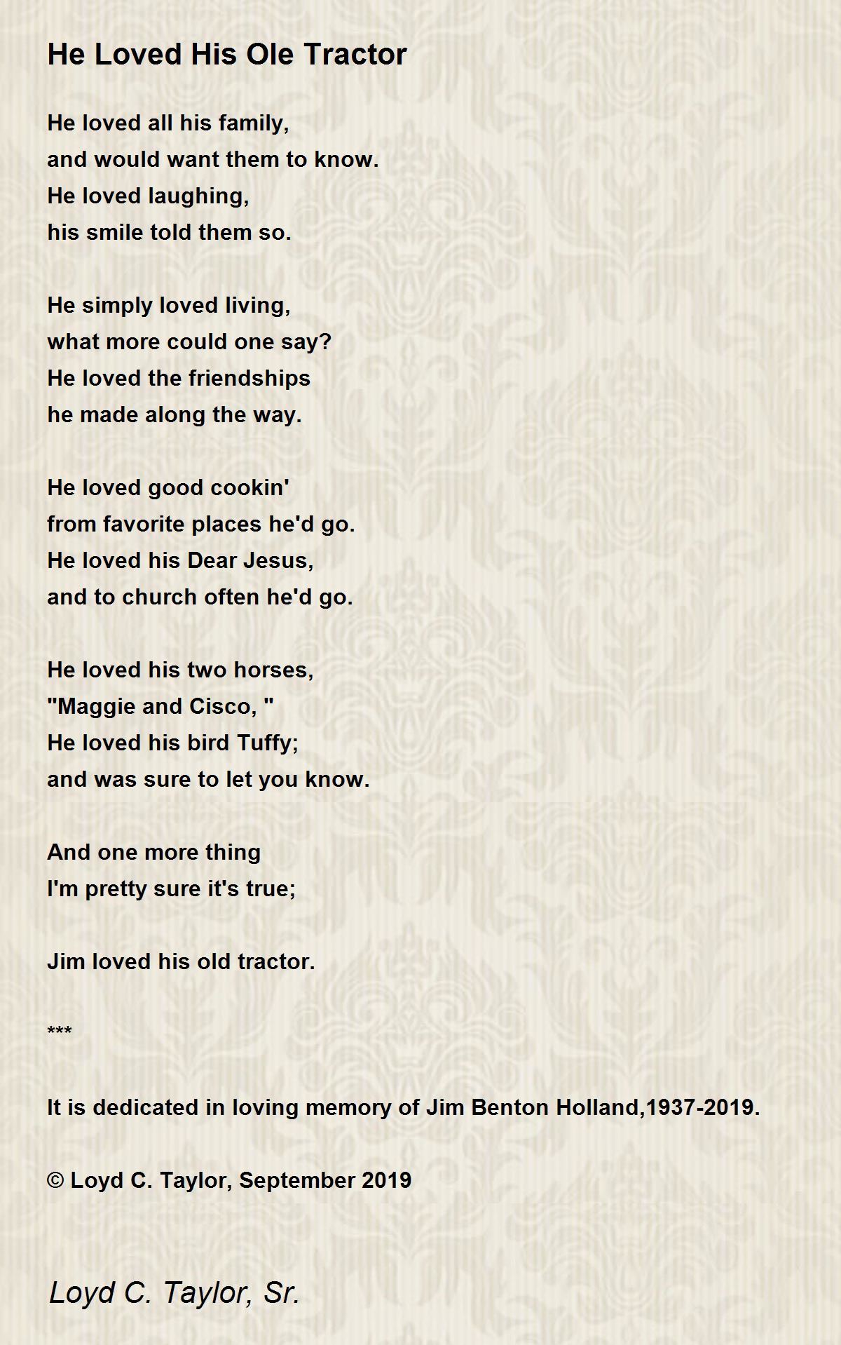 Loved this poem, the 'Poet's Notes' and the picture too. The tribute is heart warming. My prayers for late Jim Benton Holland- Rest in Peace!