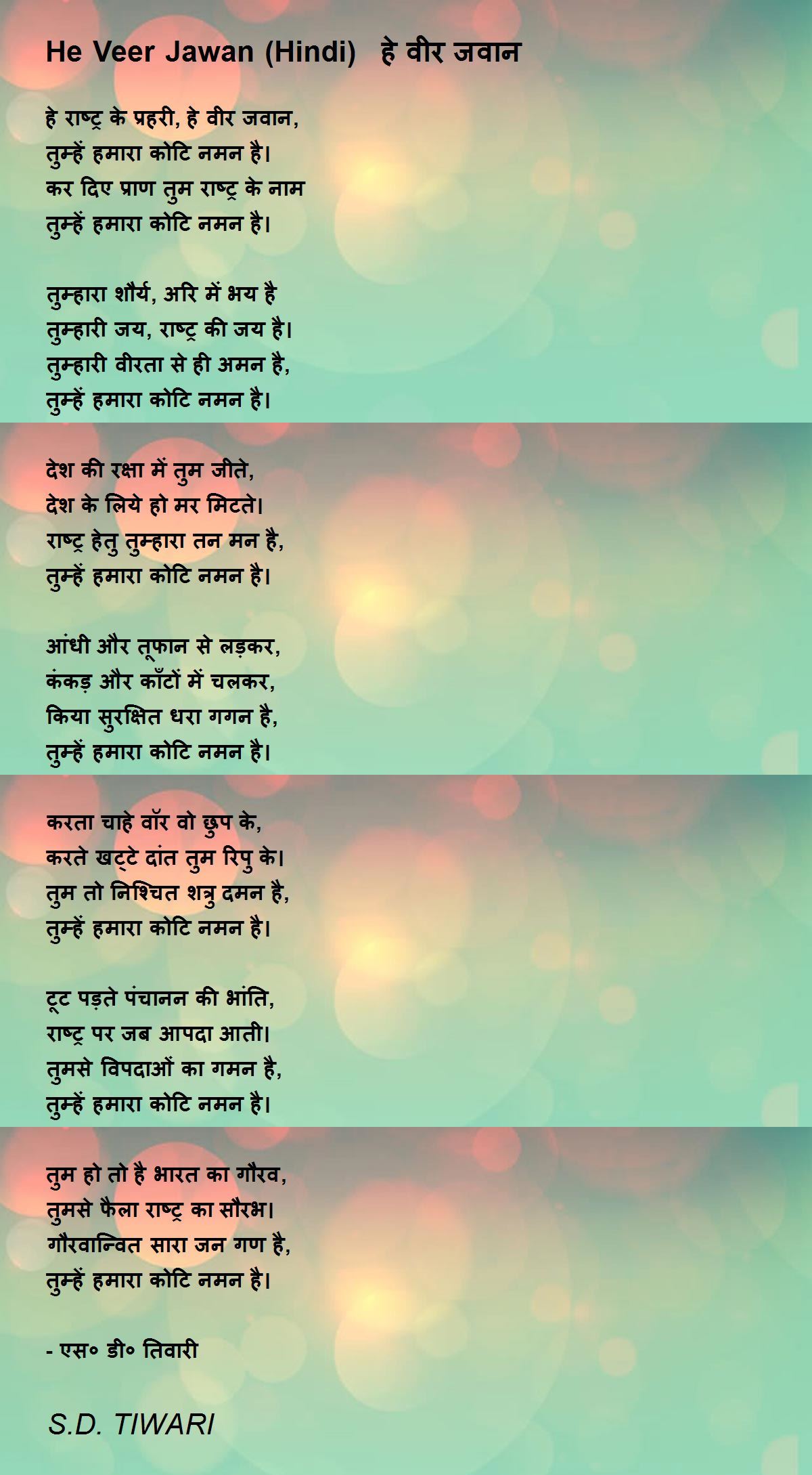 हे राष्ट्र के प्रहरी, हे वीर जवान,
