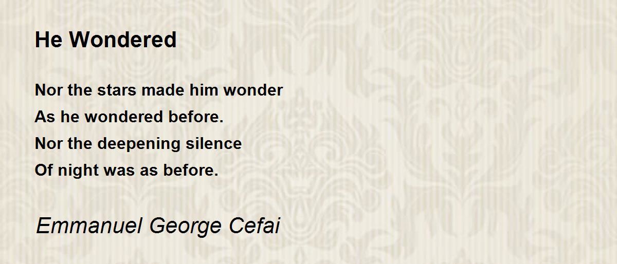 Nor the stars made him wonderAs he wondered before.Nor the deepening silenceOf night was as before.