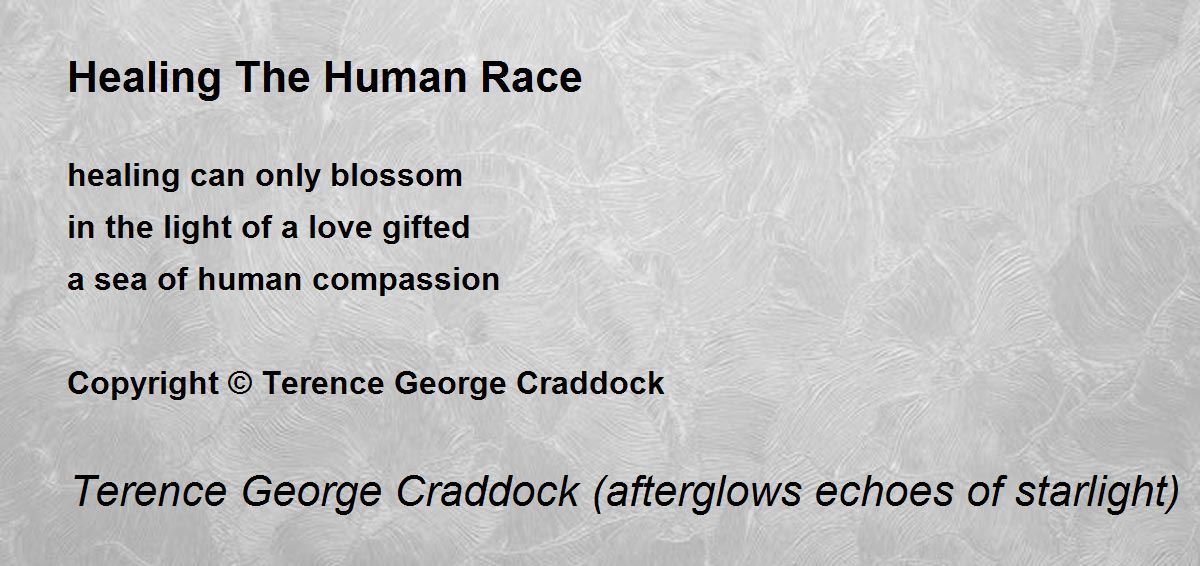 healing can only blossom in the light of a love gifted a sea of human compassion Copyright © Terence George Craddock