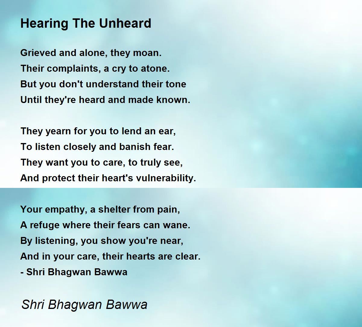 They yearn for you to lend an ear,