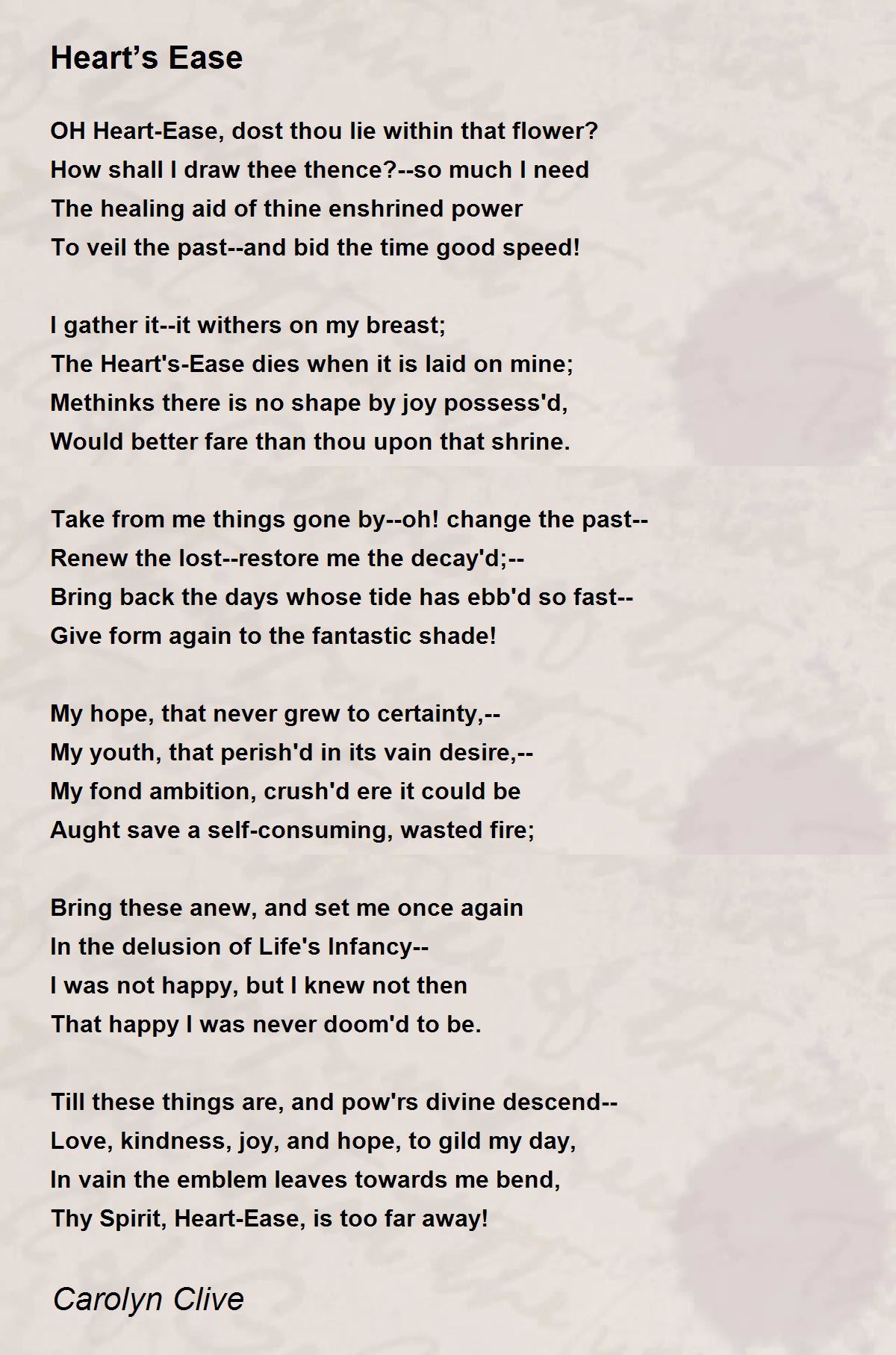 OH Heart-Ease, dost thou lie within that flower?