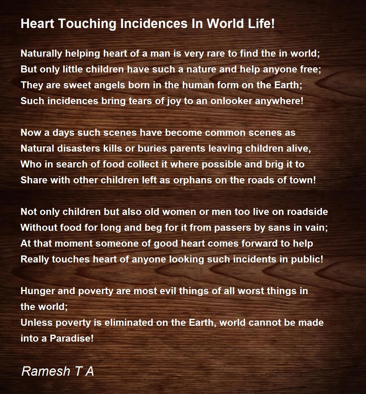 Unless poverty is eliminated on the Earth, world cannot be made into a Paradise!