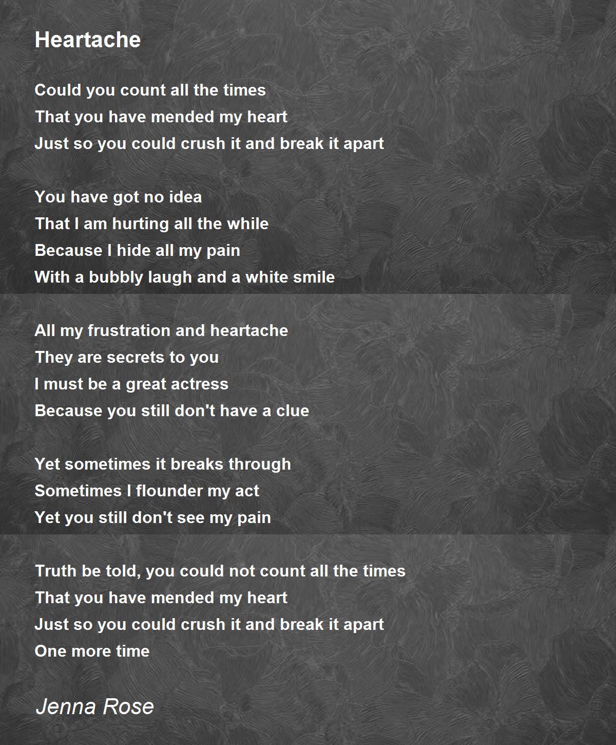 i can relate so well to this last stanza Truth be told, you could not count all the times That you have mended my heart Just so you could crush it and break it apart One more time