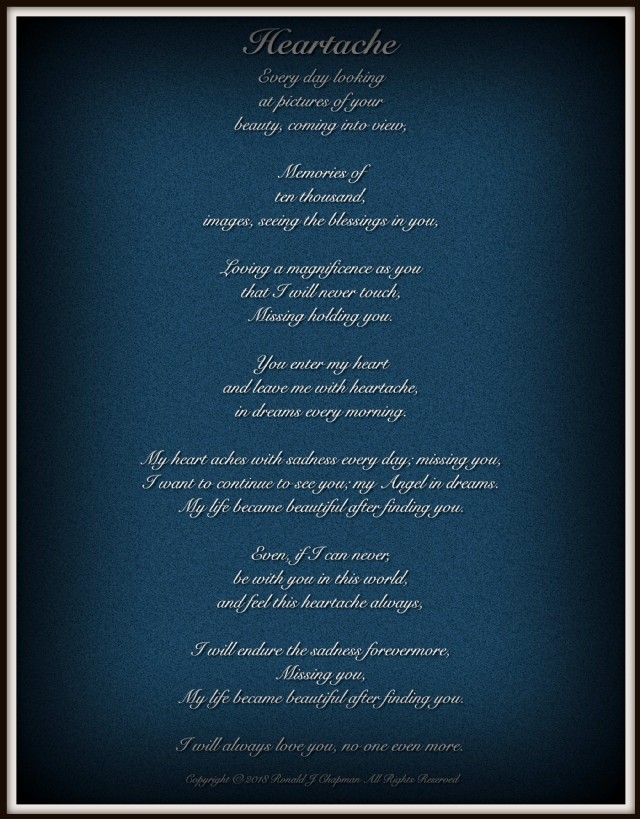 My heart aches with sadness every day; missing you,