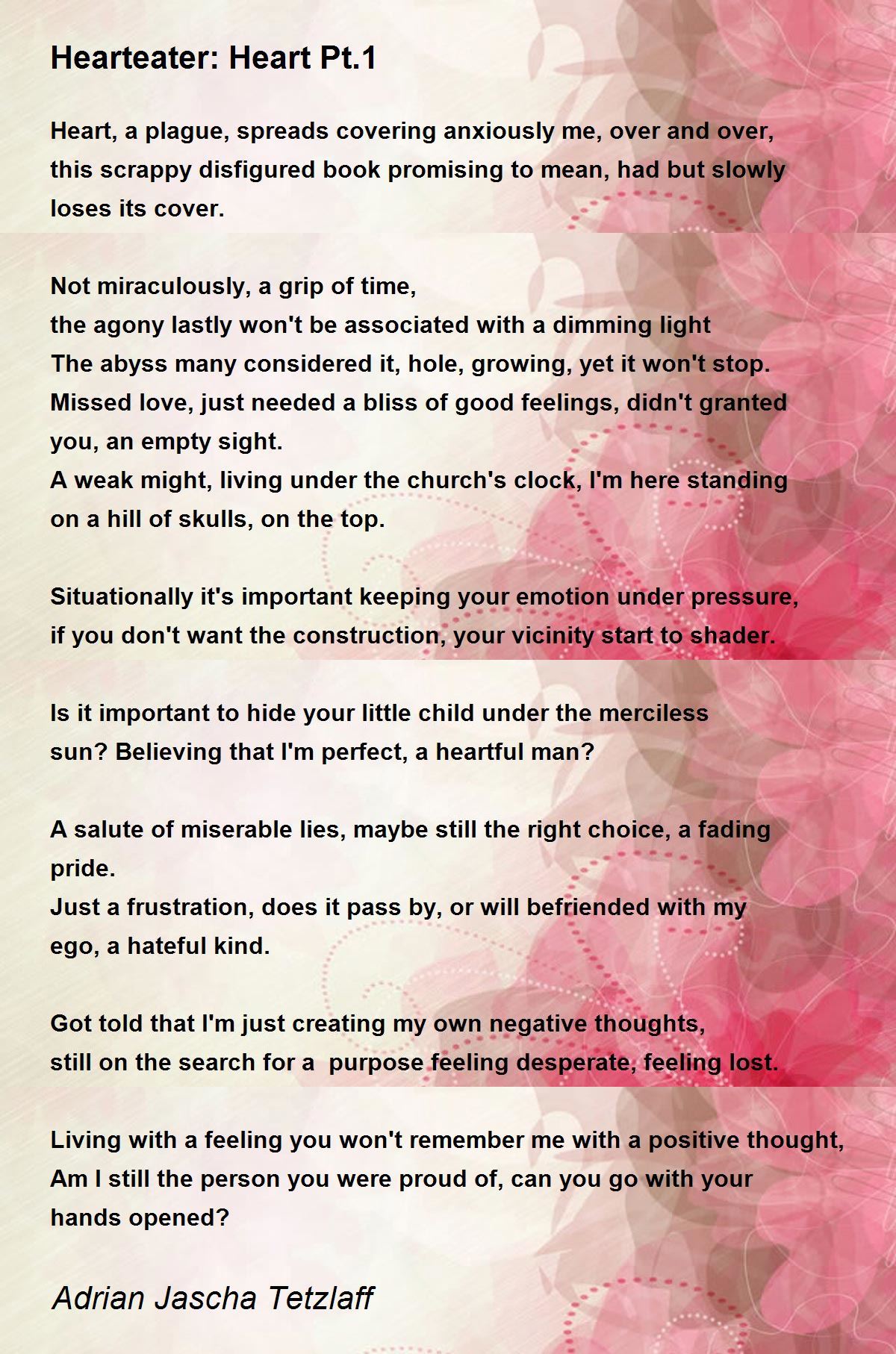 Heart, a plague, spreads covering anxiously me, over and over, this scrappy disfigured book promising to mean, had but slowly loses its cover.