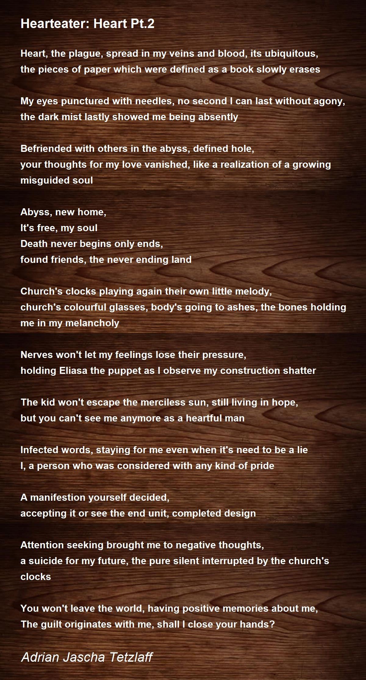 Heart, the plague, spread in my veins and blood, its ubiquitous,