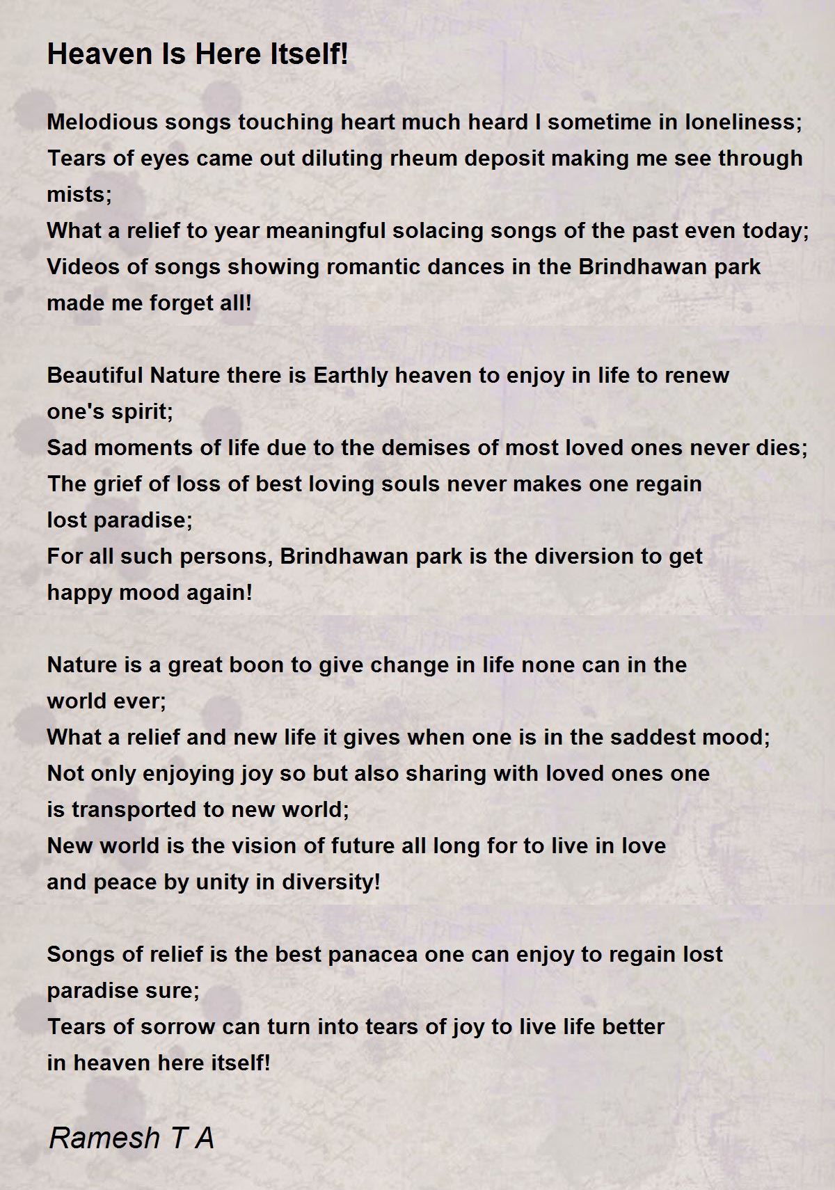 Songs of relief is the best panacea one can enjoy to regain lost paradise sure; Tears of sorrow can turn into tears of joy to live life better in heaven here itself!