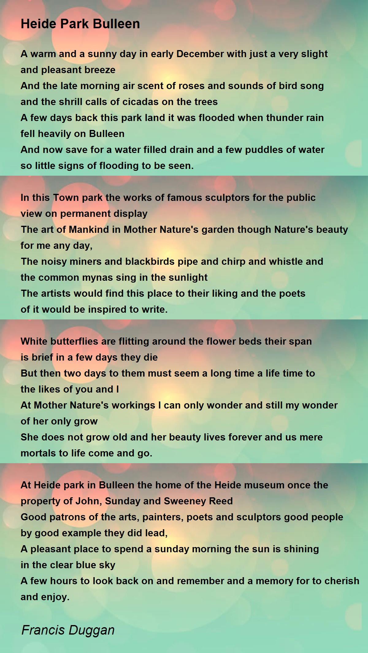 The artists would find this place to their liking and the poets of it would be inspired to write.